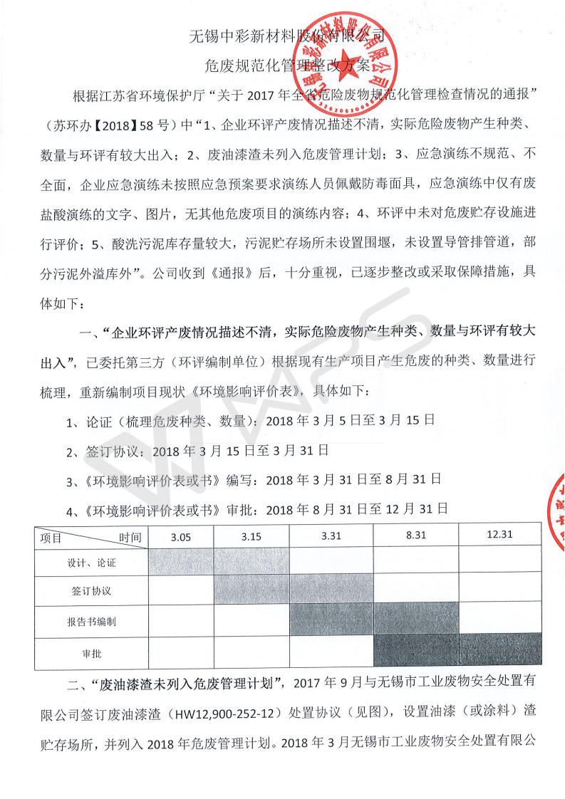 中彩环保整改打算公示